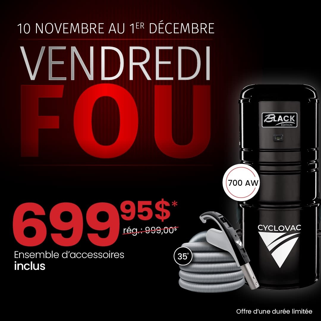 Aspirateur central CycloVac Black Edition / 700 AW + Kit d'accessoires et boyau de 35 pieds