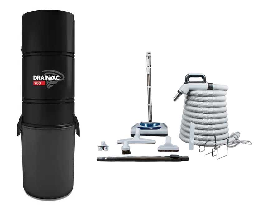 Aspirateur central Drainvac DV700 Dark Edition + Kit d'accessoires électrique et boyau de 35 pieds