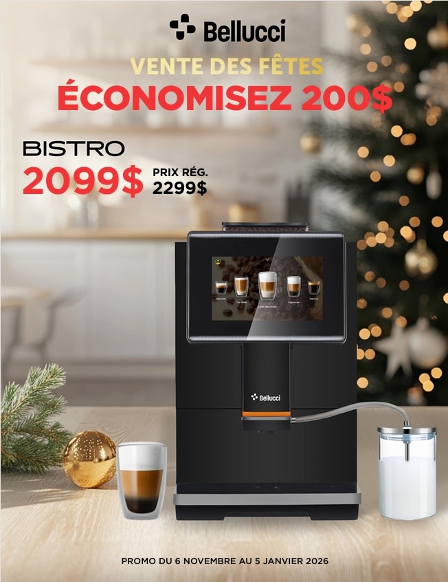 Découvrez la Bellucci Bistro, une machine à café pensée pour les amateurs exigeants. Parfaite pour un usage résidentiel, elle combine des caractéristiques professionnelles avec une simplicité d’utilisation remarquable. Dotée d’un grand écran tactile, la Bellucci Bistro permet de préparer jusqu’à boissons 15 boissons différentes, du simple espresso au cappuccino, en passant par des options entièrement personnalisables. Grâce à son moulin en céramique performant, elle garantit une mouture précise et durable pour une extraction parfaite des arômes. Avec son système de lait automatique One Touch Cappuccino, vous obtenez des boissons à base lait, à la mousse onctueuse, d’une simple pression. Que vous soyez un barista ou un amateur exigent, la Bellucci Bistro transforme chaque moment café en une expérience mémorable.