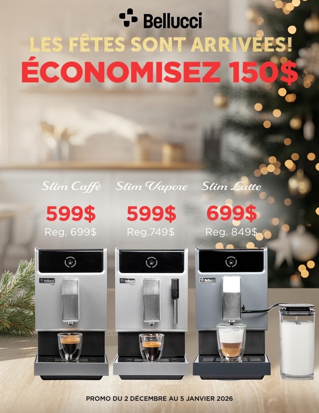 Doté d’un groupe café surdimensionné breveté et facile à nettoyer, d’un système d’extraction puissant de 19 bars et d’un moulin à meules en acier inoxydables, les Bellucci Slim épatent par leurs performances dans un si petit format!