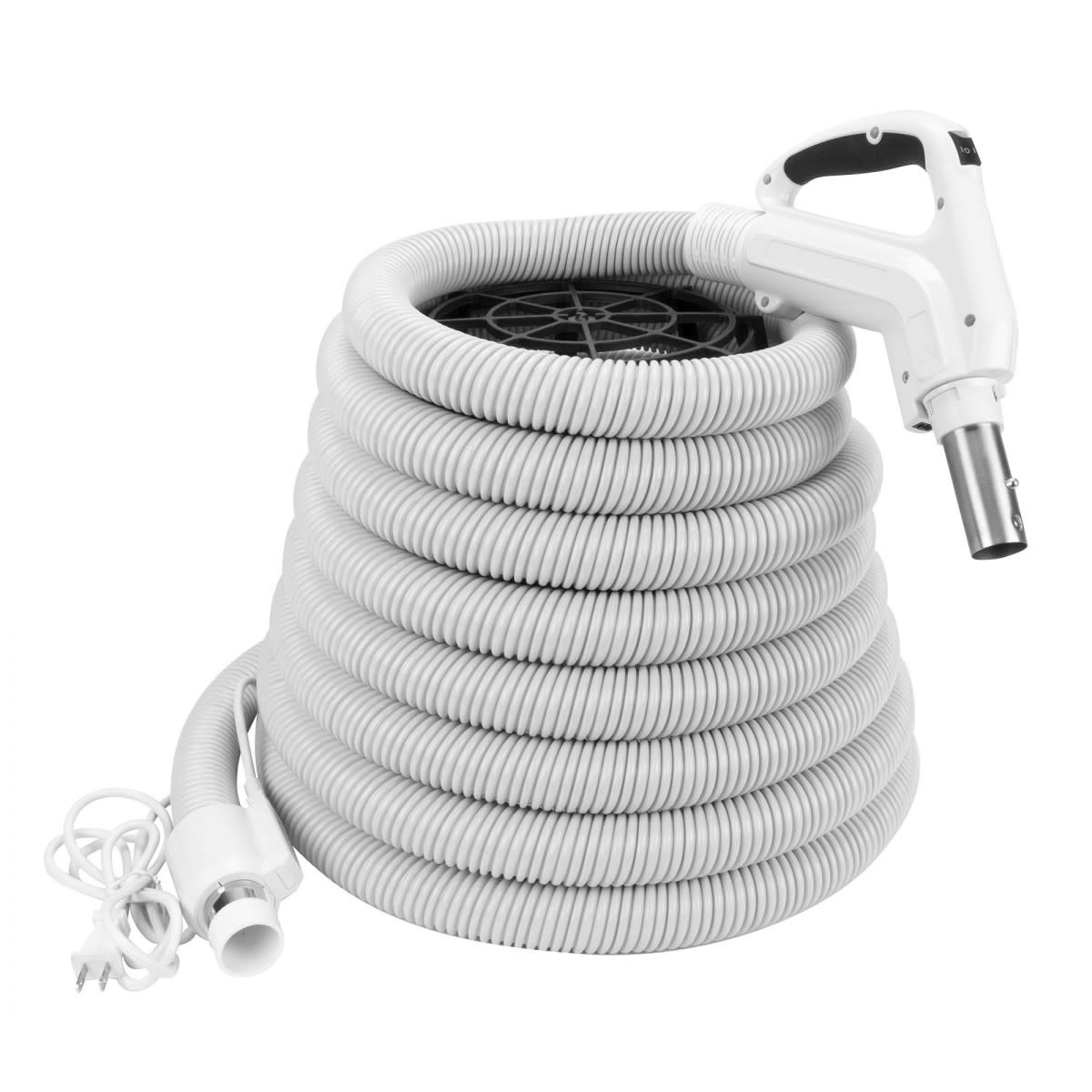 Boyau électrique 35' Comfort Flex pour aspirateur central - 10 m - poignée ergonomique avec prise caoutchoutée confortable et pivotante à 360° - gris - compatible balai électrique - bouton-barrure - bouton marche-arrêt.