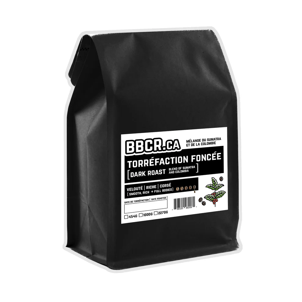 Notre torréfaction foncée a incité l'addition d'une nouvelle origine à notre collection. Sumatra et la Colombie donnent un café riche et corsé pour la presse à café, le café filtre et l'expresso.